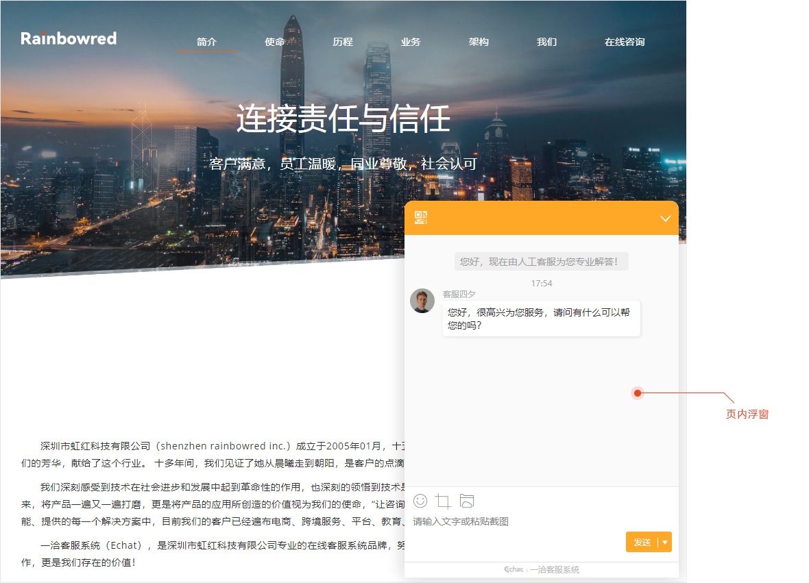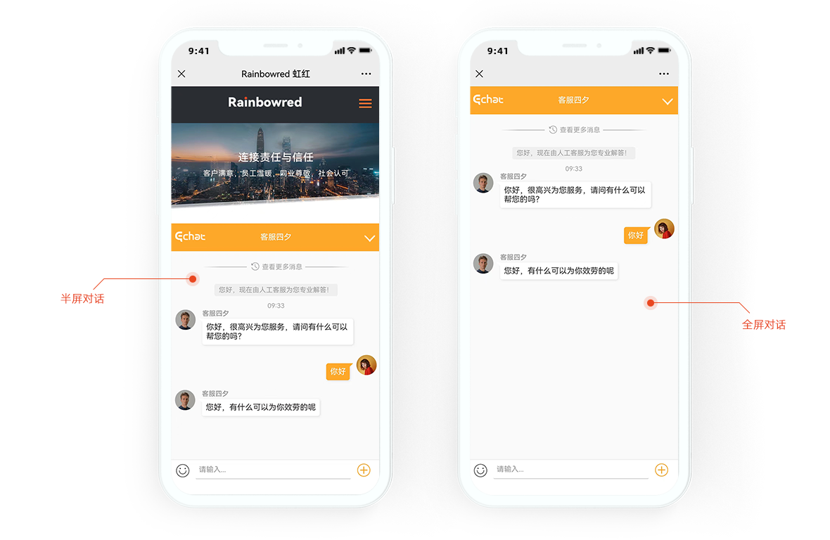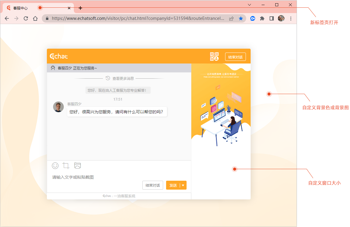 (非特殊说明,本文版权归原作者所有,转载请注明出处 :https://www.echatsoft.com/doc-detail-3801.shtml ) 「Echat」一洽专业在线客服系统,访客通过PC网站、手机网站、商城系统、微信、APP、小程序等多渠道咨询,系统智能支持:多样式选择、多路由接入、多业务整合、多角色监控、多维度分析,多平台统一管理。 一洽客服系统,给沟通多一种可能~~