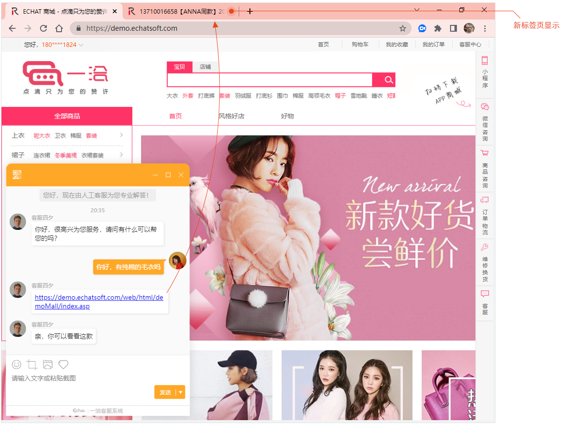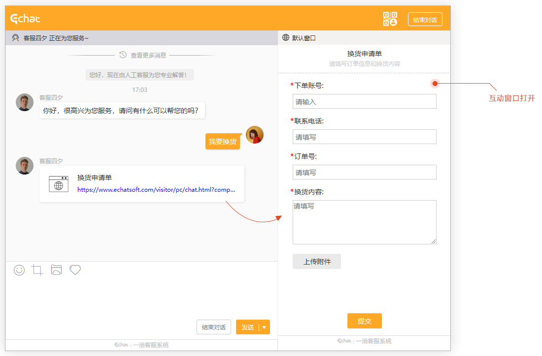 (非特殊说明,本文版权归原作者所有,转载请注明出处 :https://www.echatsoft.com/doc-detail-3803.shtml ) 「Echat」一洽专业在线客服系统,访客通过PC网站、手机网站、商城系统、微信、APP、小程序等多渠道咨询,系统智能支持:多样式选择、多路由接入、多业务整合、多角色监控、多维度分析,多平台统一管理。 一洽客服系统,给沟通多一种可能~~