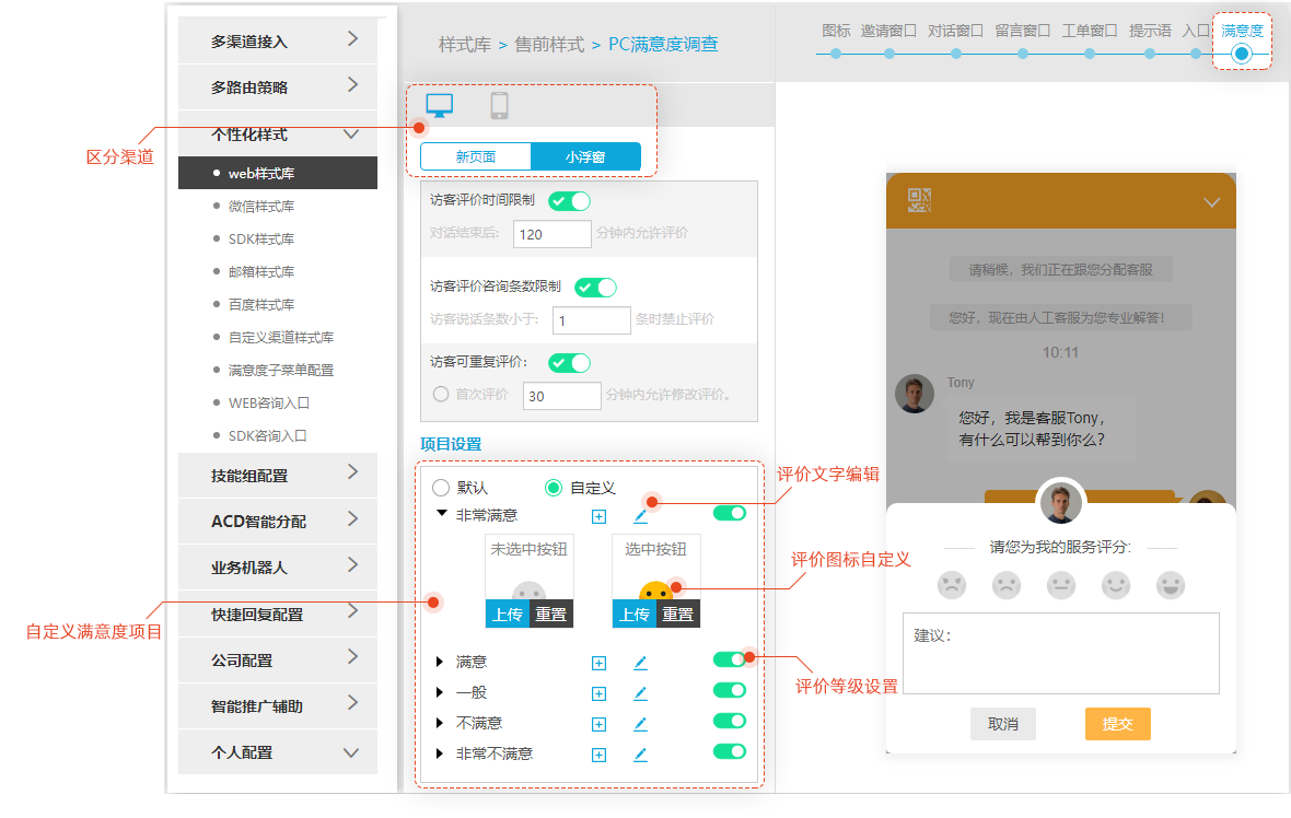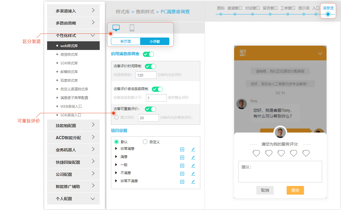 一、自定义满意度评价表单设置
