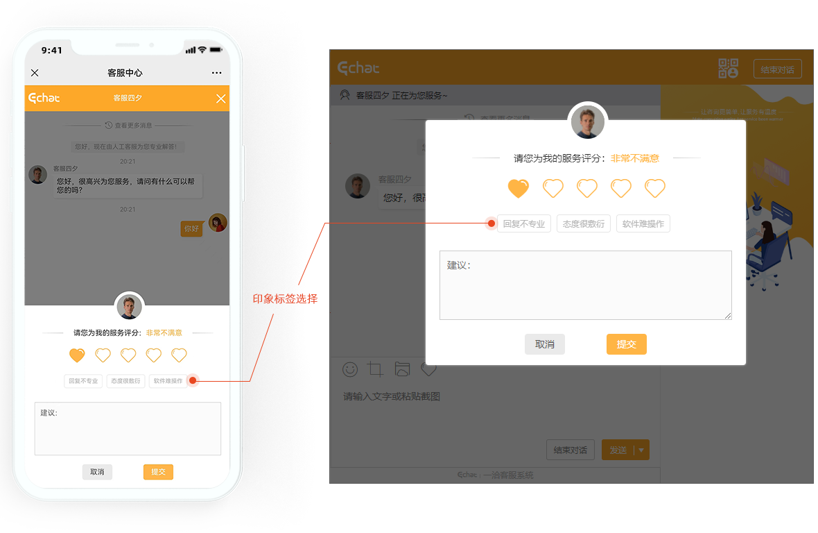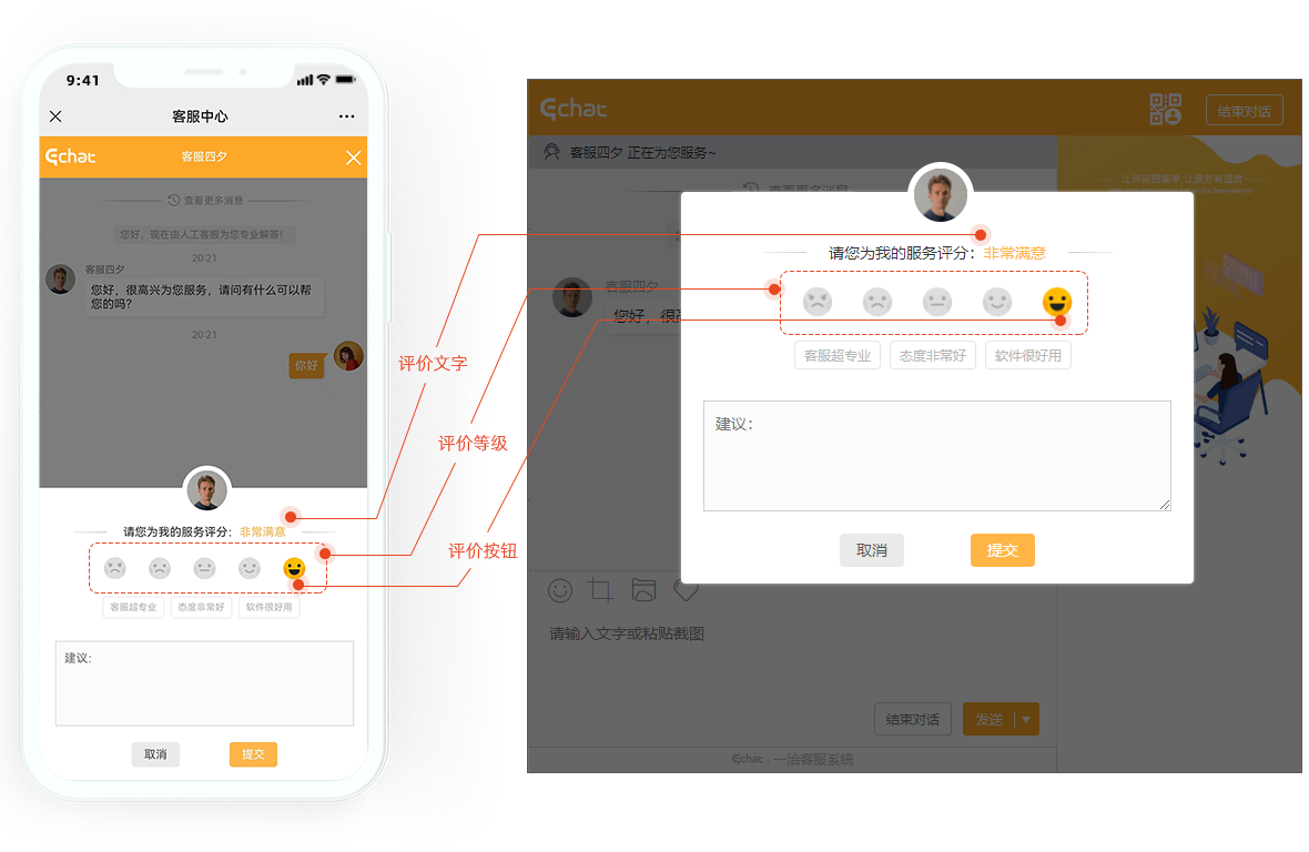 (非特殊说明,本文版权归原作者所有,转载请注明出处 :https://www.echatsoft.com/doc-detail-3810.shtml ) 「Echat」一洽专业在线客服系统,访客通过PC网站、手机网站、商城系统、微信、APP、小程序等多渠道咨询,系统智能支持:多样式选择、多路由接入、多业务整合、多角色监控、多维度分析,多平台统一管理。 一洽客服系统,给沟通多一种可能~~