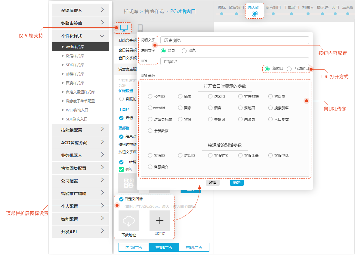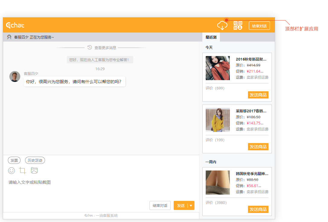 在数字化服务日益深入的今天,客服中心不仅是沟通渠道,更是业务延伸与价值创造的重要枢纽。一洽客服系统深度开放访客端界面集成能力,支持企业在广告栏、工具栏及顶部栏灵活配置扩展应用,从而将客户服务场景与核心业务流程无缝对接,打造高度定制化、功能丰富的智能服务门户,助力企业实现从“被动服务”到“主动赋能”的跨越。