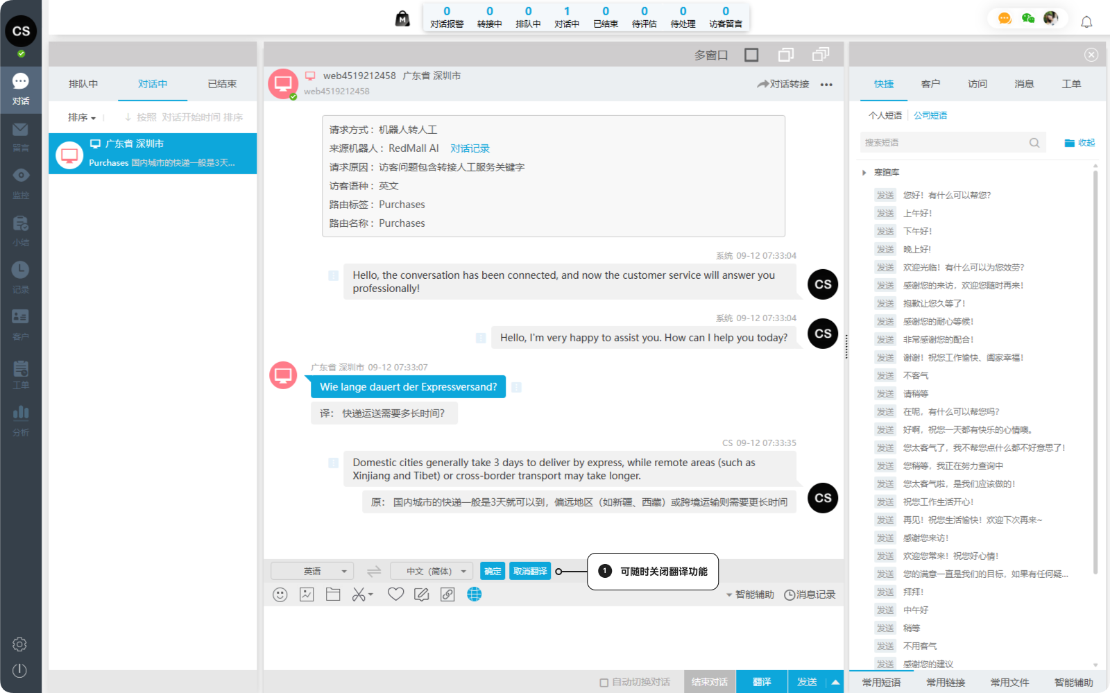 在全球化的商业环境中,语言差异常常成为企业与海外客户之间的无形屏障。Echat 推出的「自动翻译」功能,通过集成领先的多语言翻译引擎,实现客服与访客之间的实时双向翻译,让跨语言沟通变得简单、高效、无障碍。