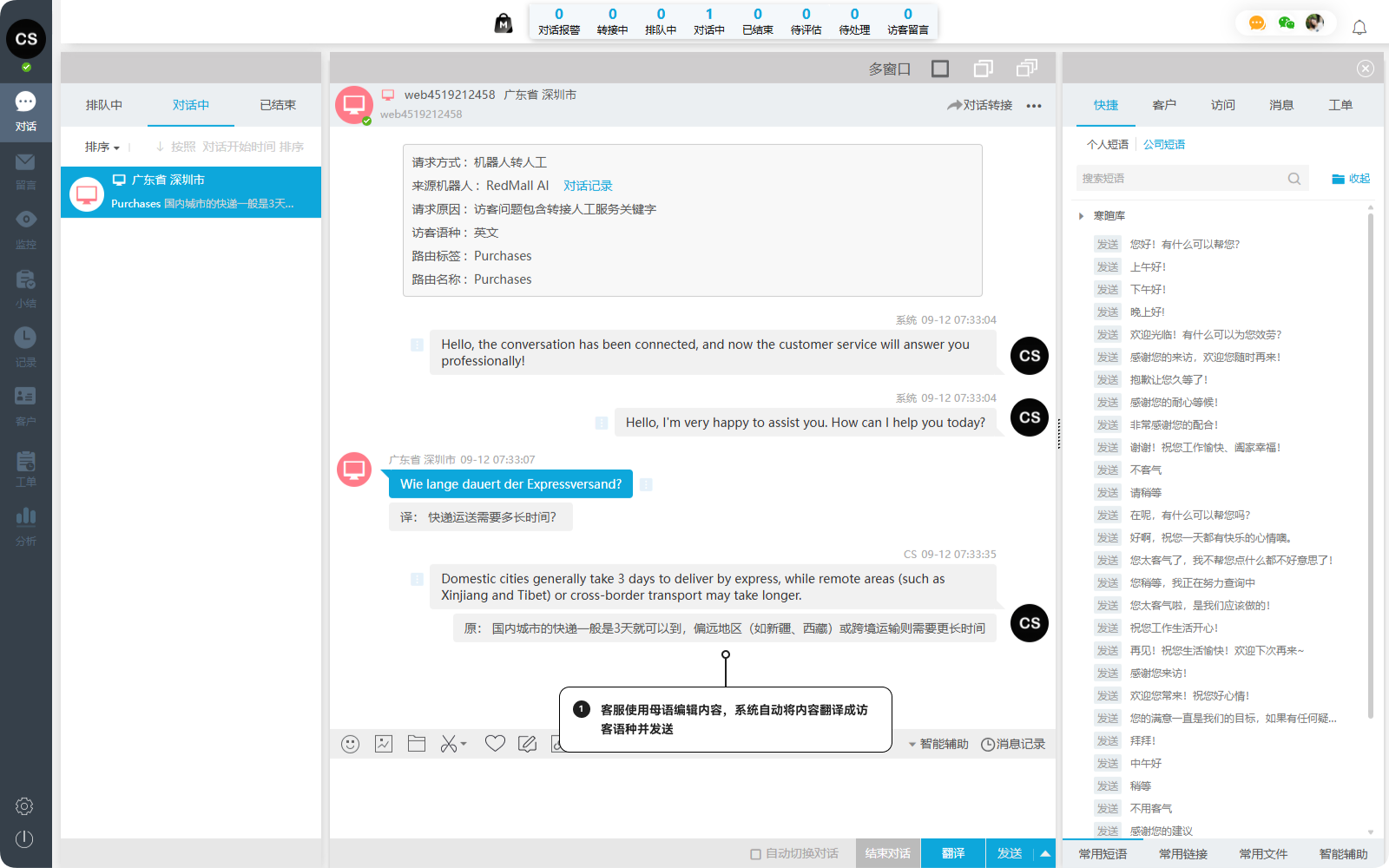 无论客户来自哪个国家、使用哪种语言,Echat 自动翻译都能助您轻松应对,实现无障碍商务沟通