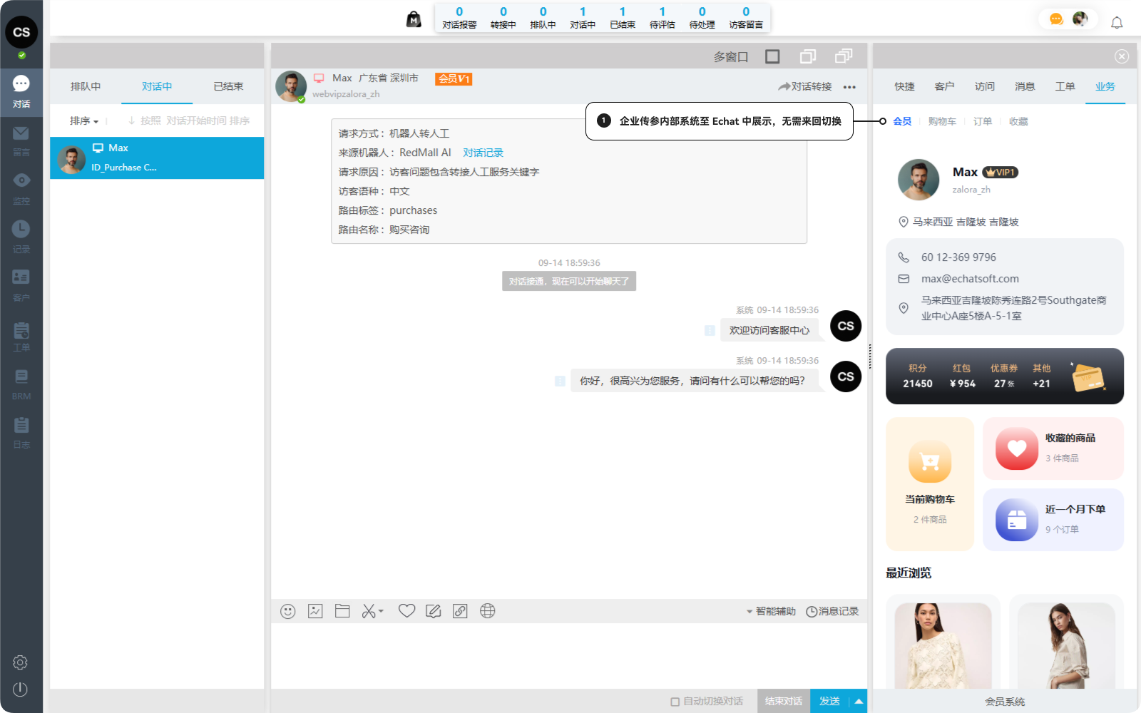 (非特殊说明,本文版权归原作者所有,转载请注明出处 :https://www.echatsoft.com/doc-detail-3820.shtml ) 「Echat」一洽专业在线客服系统,访客通过PC网站、手机网站、商城系统、微信、APP、小程序等多渠道咨询,系统智能支持:多样式选择、多路由接入、多业务整合、多角色监控、多维度分析,多平台统一管理。 一洽客服系统,给沟通多一种可能~~