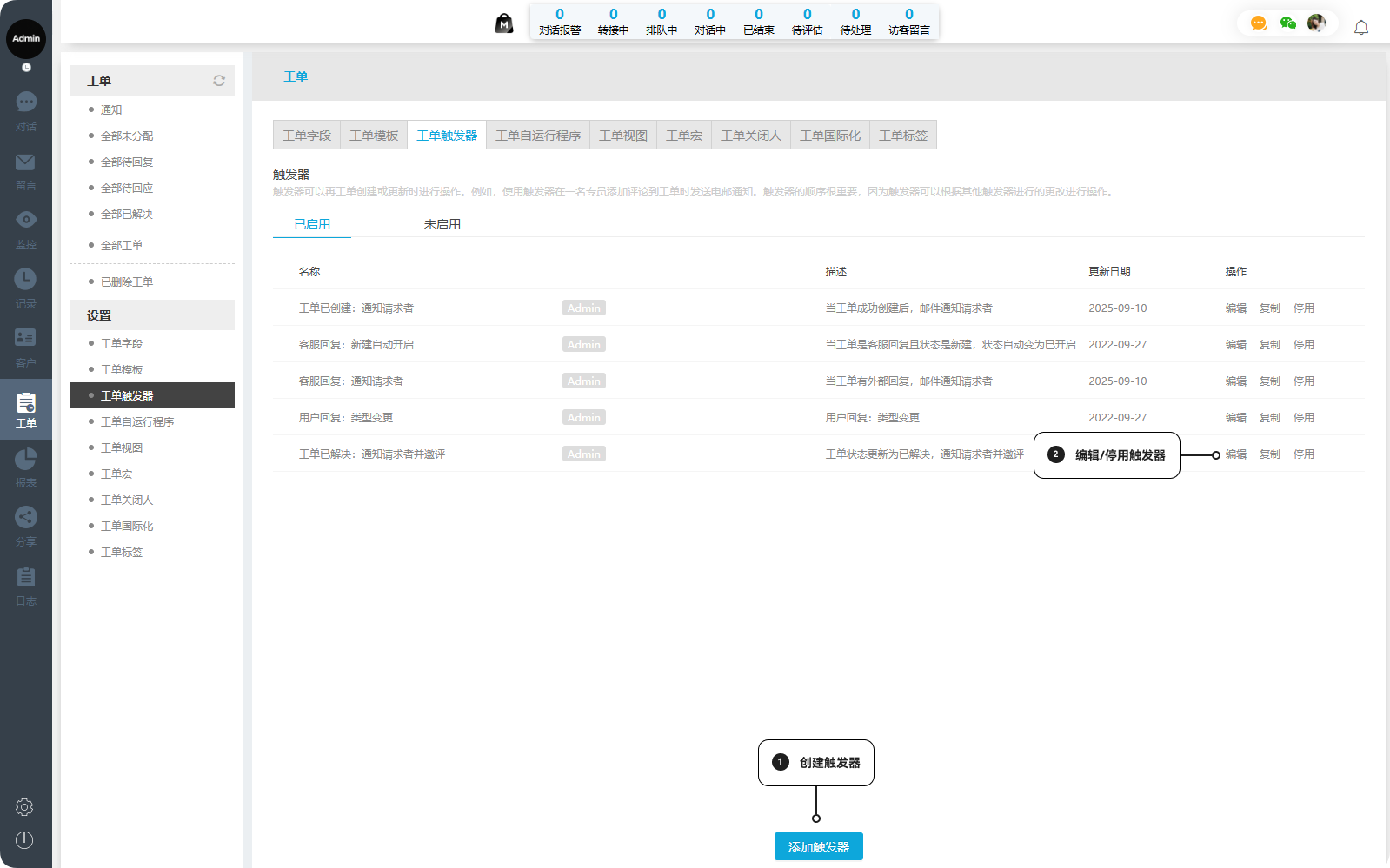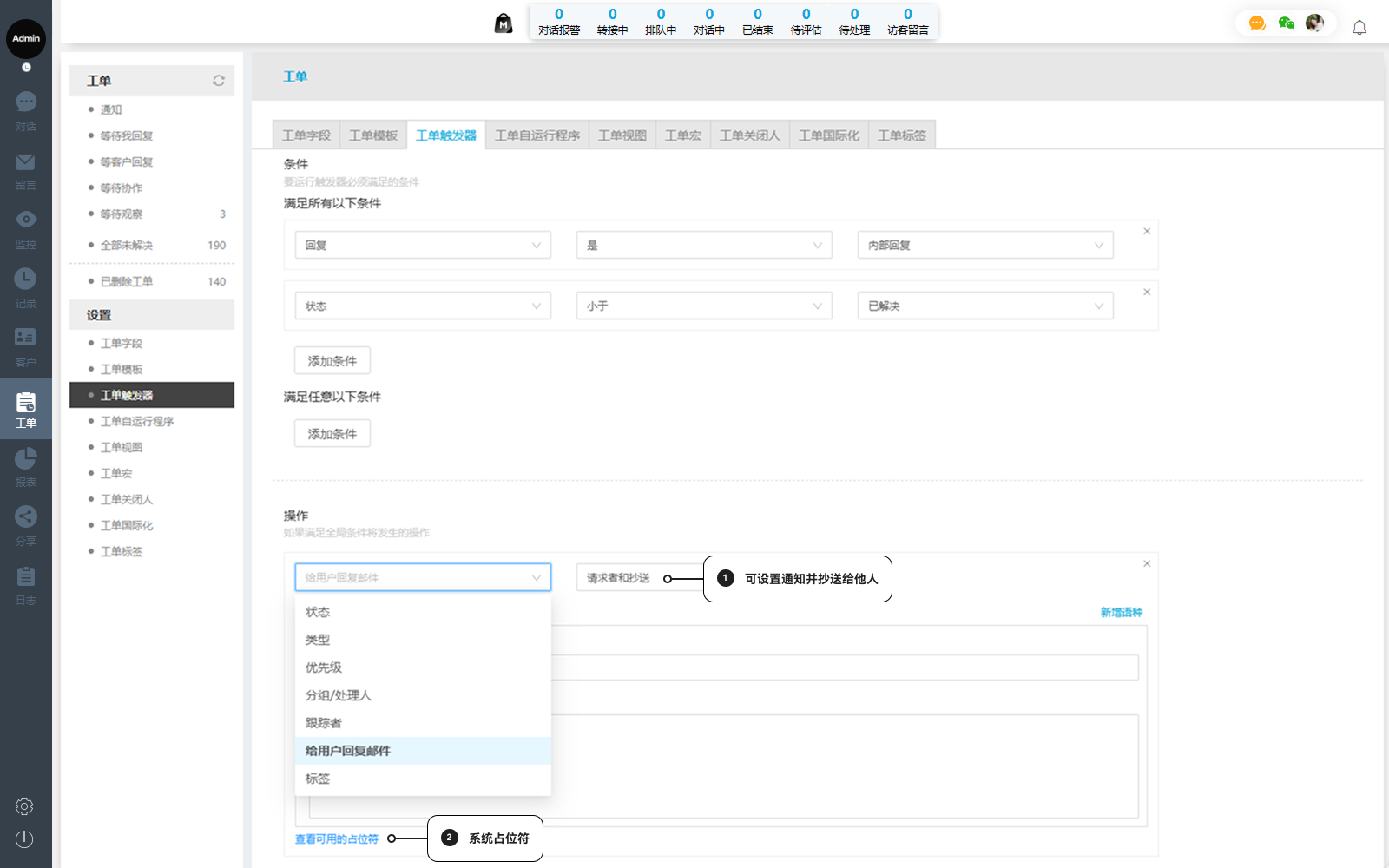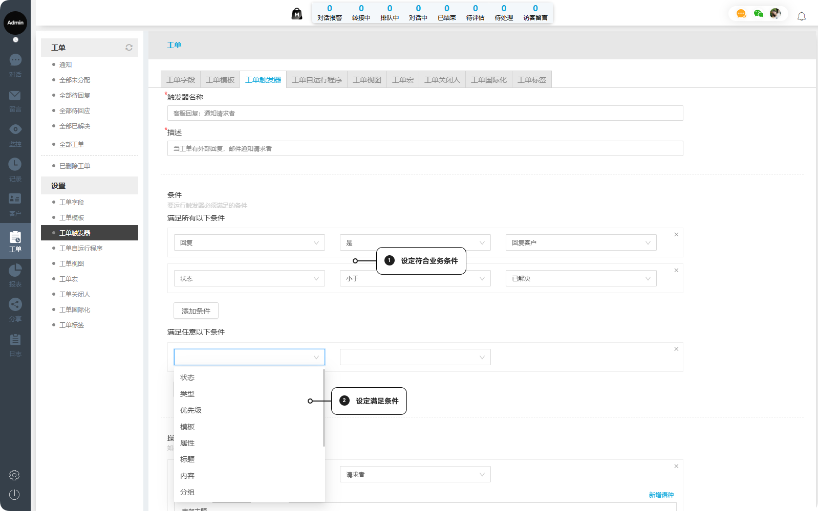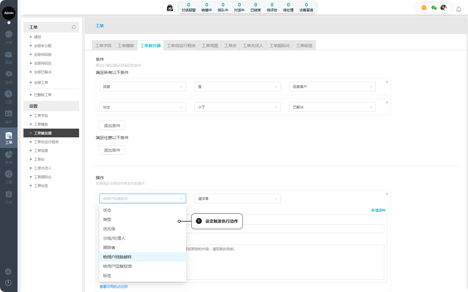 在工单处理过程中,许多重复性操作和标准化流程占据着客服团队的大量时间。如何让系统自动完成这些工作,让客服专注于更有价值的服务?一洽工单触发器功能为您提供智能化自动化流程引擎,当预设条件满足时,系统自动执行后续操作,让工单处理更加高效、规范、智能。