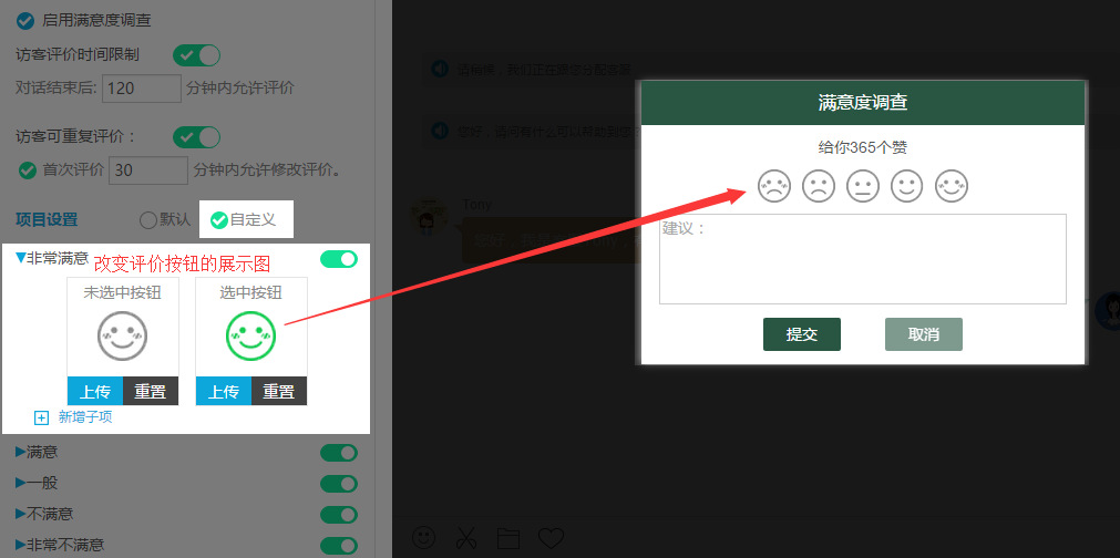 3、支持自定义满意度评价图标设置。